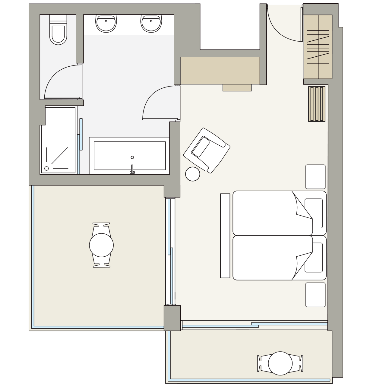 • Double or twin beds with Gold Selection mattress and premium pillows and bed linen